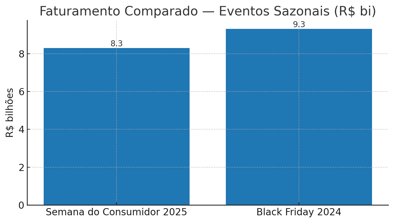 Além disso, o pano de fundo do e-commerce segue positivo: 2023 fechou com R$ 196,1 bilhões em vendas online no Brasil (+4,8% a/a), segundo o MDIC — consolidando o canal como alavanca real de receita nas datas sazonais.