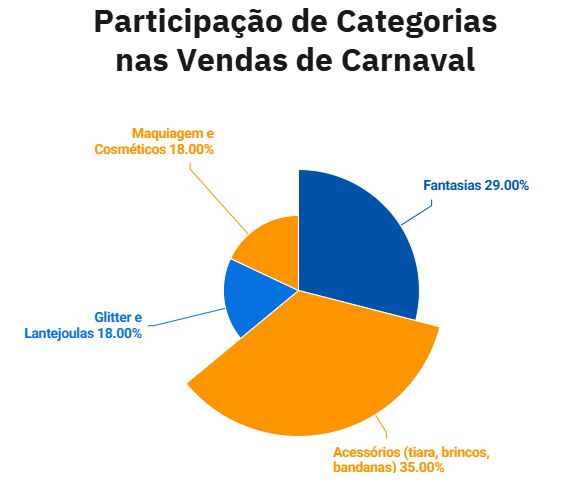 Não há surpresa aqui: as fantasias são os produtos mais procurados no Carnaval. Elas representam grande parte do movimento comercial online e, historicamente, são o topo de demanda nessa época.