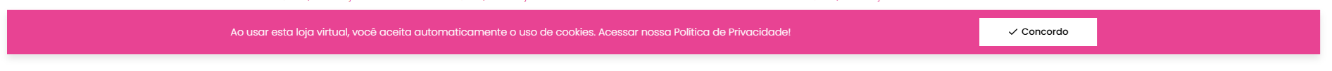 Em conformidade com a LGPD, o Alerta de Uso de Cookies da Linha Star é implementado de forma premium e não-invasiva. Não atrapalha a navegação, mas oferece ao cliente a segurança de que está comprando em uma loja transparente e que se preocupa com a proteção de dados.