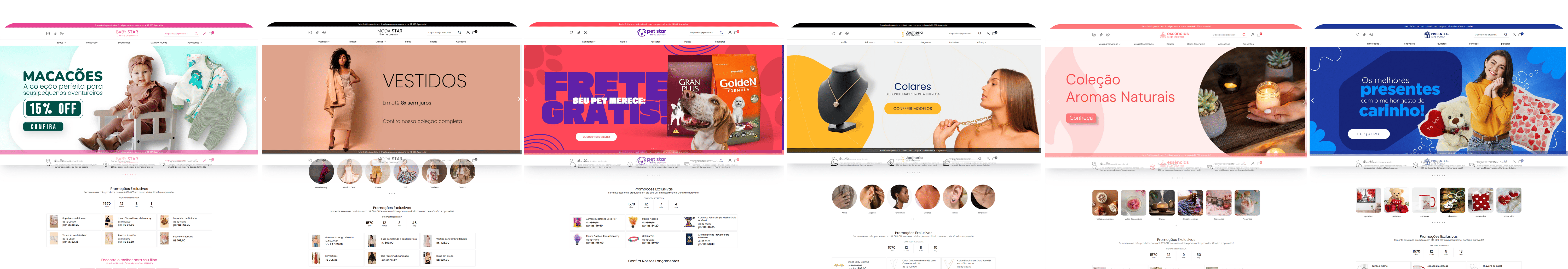 Star é composta por 08 temas especializados, projetados para nichos que exigem um visual limpo, elegante e altamente profissional: